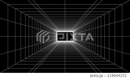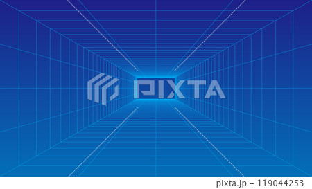 奥行きのあるトンネルのワイヤーフレーム 仮想空間背景 ベクター素材