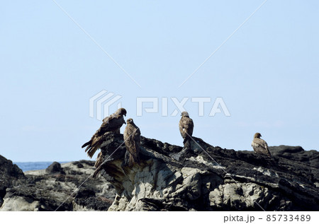 海岸のトビ トビの海辺 並んだトビ