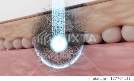ピコレーザーがシミの原因メラニンを破壊する治療イメージ 衝撃波の3DCG