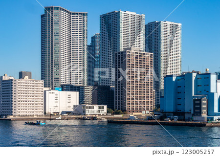 東京 中央区 勝どきの都市風景 立ち並ぶタワーマンション