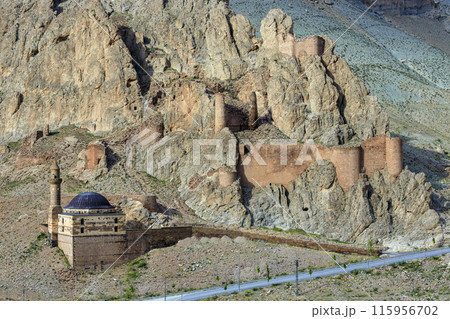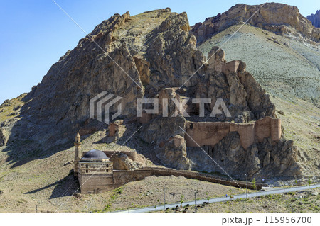 トルコ ドゥバヤジットの断崖絶壁の岩山に囲まれたアーメド・イハニの墓