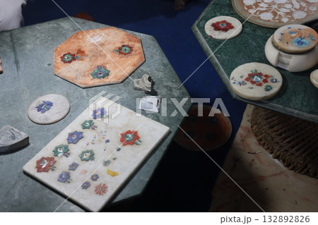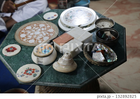 【インド】大理石象嵌細工