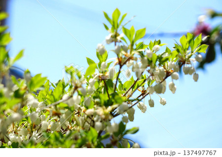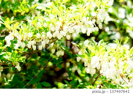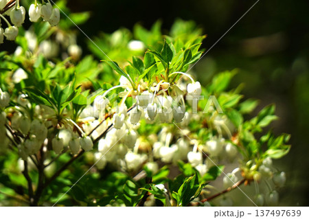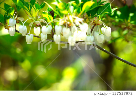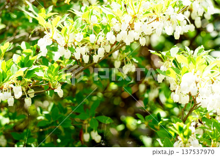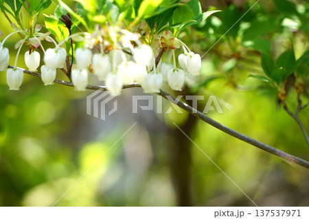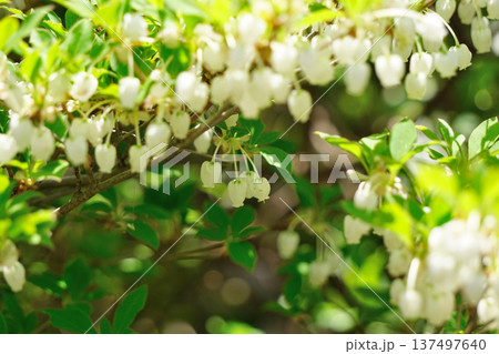 wHITE BLOSSOMS eNKIANTHUS IN Japanese garden in belgum