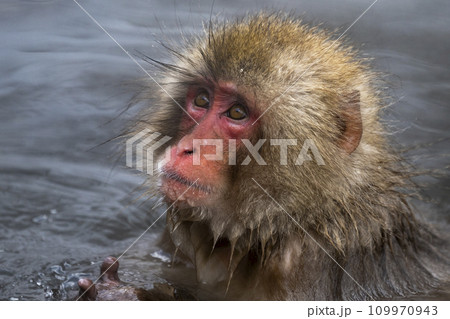 Expressive Japanese Macaque at Jigokudani on a cold, steamy day.