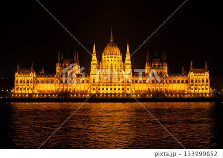 ドナウ川とライトアップされたブダペスト国会議事堂
