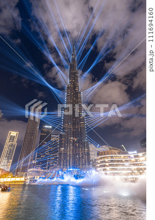 ドバイファウンテンとブルジュ・ハリファの夜景