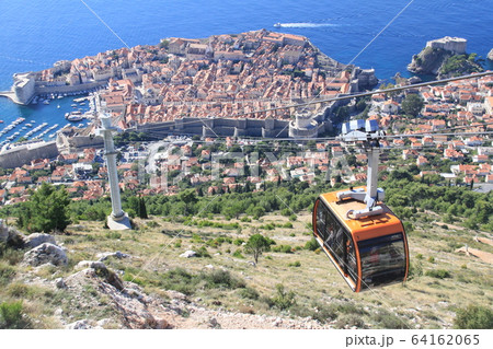 クロアチア 世界文化遺産 ドブロヴニク スルジ山から見下ろす古都の街並みとロープウェイ