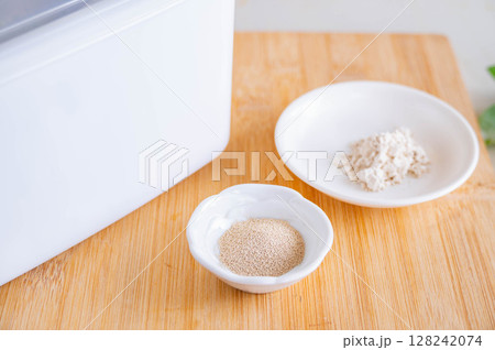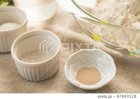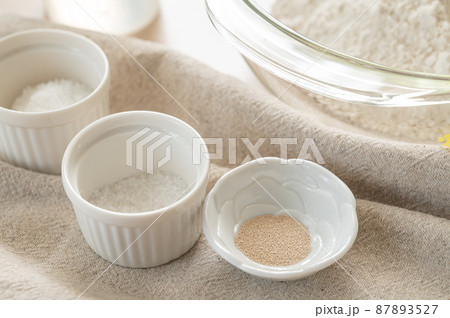 パン作り 砂糖の上に加えたドライイースト