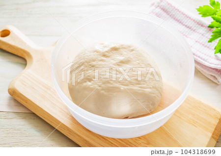 冷蔵庫から出した低温発酵のパン生地