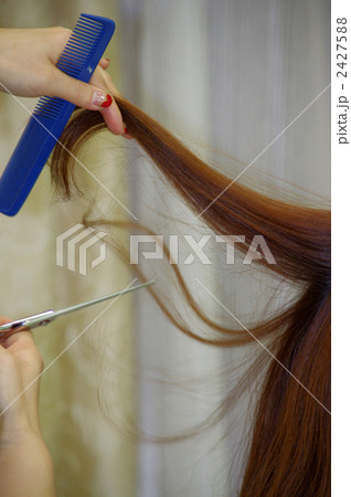 女性の髪をカットをする美容師の手元