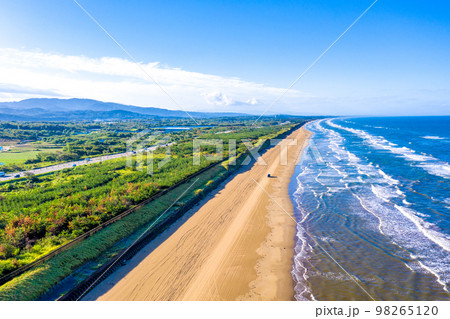千里浜なぎさドライブウェイ 満ちた潮が砂浜を洗う風景 石川県羽咋市