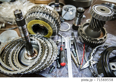 Car automatic transmission parts at shallow depth of field