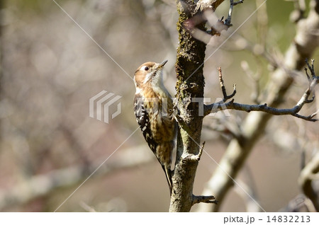 枯れ枝にとまる野鳥【コゲラ】保護色