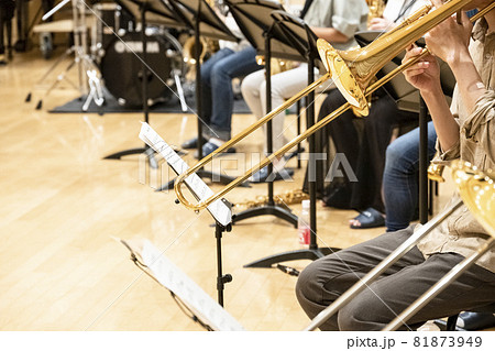 スタジオで練習中のジュニアジャズオーケストラ
