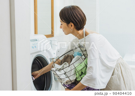 主夫 (洗濯 家事 仕事 ドラム式 家 30代 男性 パパ ランドリー 家電 住宅 エプロン 清潔)