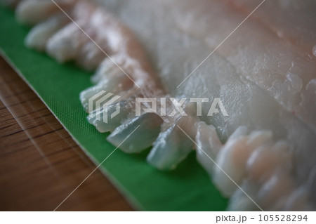 天然ヒラメのサクと縁側をドリップシートで包む