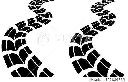 カーブしたタイヤの跡を表すトレッドパターンのシルエットイラスト