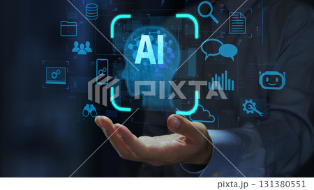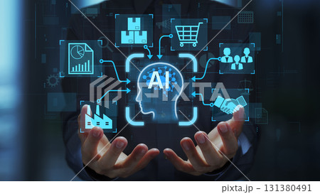 AI搭載ERPとインテリジェントオートメーション。データ駆動型の予測分析。AIアイコンを持つビジネス