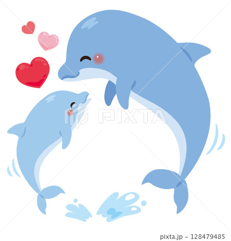 笑顔なイルカの親子イラスト