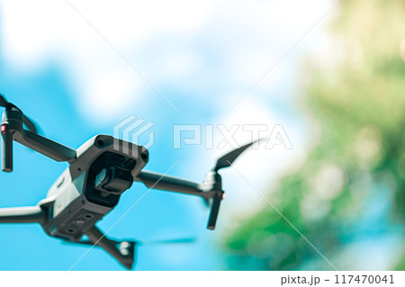 晴れの屋外でドローン撮影を楽しむ日本人男性|ドローンイメージ