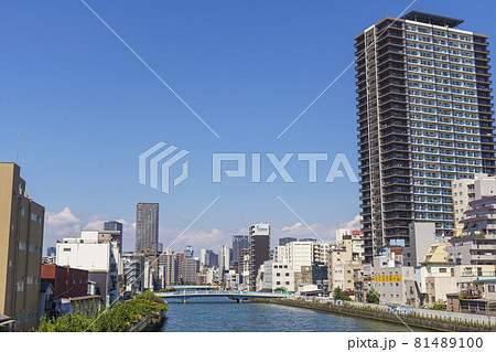 京セラドーム大阪周辺の高い位置から望む大阪都市風景 2021年8月