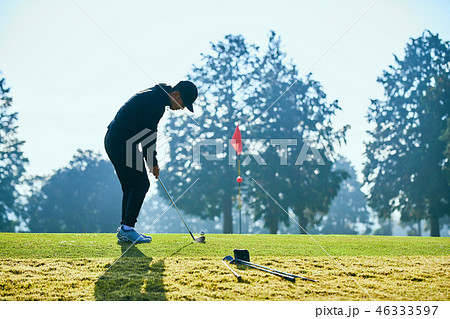 ゴルフを楽しむ日本人のミドル男性