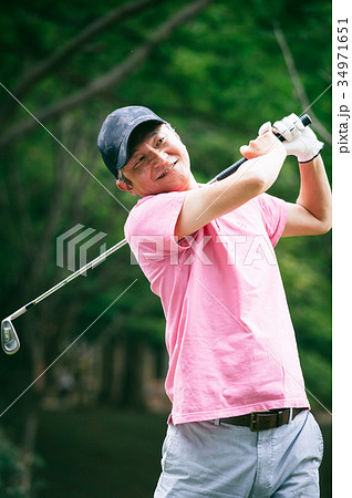 ゴルフをするミドル男性