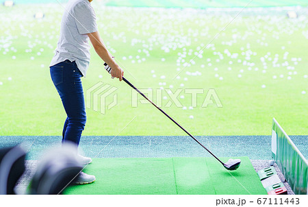 ダイエットにゴルフ練習で汗を流す中年女性【アフターコロナのライフスタイル】