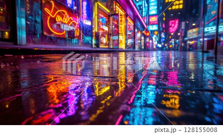 A Stunning Rainy Cityscape at Dusk with Vibrant Colors