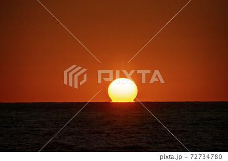 礼文島 カランナイ岬の日本海に沈むサンセットでのダルマ夕陽