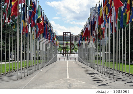 国際連合欧州本部前にある壊れたイスの彫刻 ジュネーブ スイス
