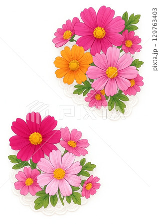 可憐なコスモスとレースのフラワーコーナーフレーム