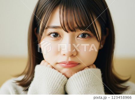 口元をゆがませた感傷的な表情の若い女性(AI生成画像)