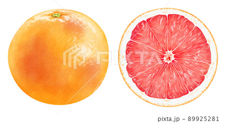 グレープフルーツルビー 丸ごと・断面の手描きイラスト