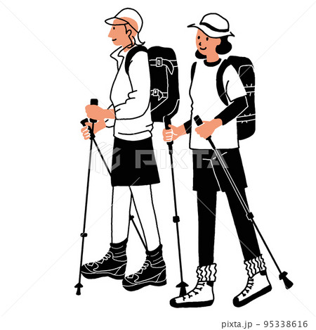 山ガール 登山 ハイキング 女性 線画 ベクター