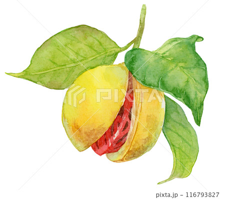 ナツメグの実 水彩イラスト