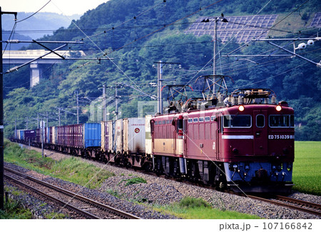 1996年 東北本線を走るED75100コンテナ貨物列車