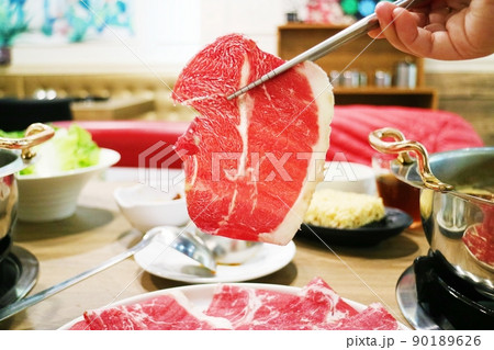 有人用筷子夾起了一大片新鮮紅嫩的肉片