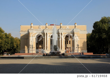 ナボイ・オペラ・バレエ 劇場と噴水 ウズベキスタンのタシケント