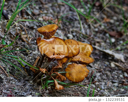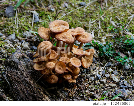 自然 茸 ナラタケモドキ、サクラの切株など意外と身近なところで見かけるキノコ