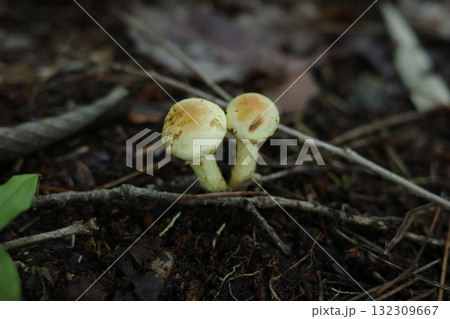 地面に生えたニガクリタケ 猛毒キノコ