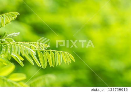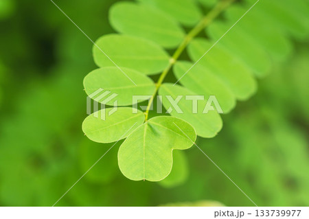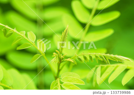 夏の山 緑色のニセアカシアの葉10