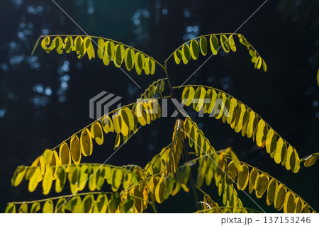 秋の日差しに輝くニセアカシアの葉01