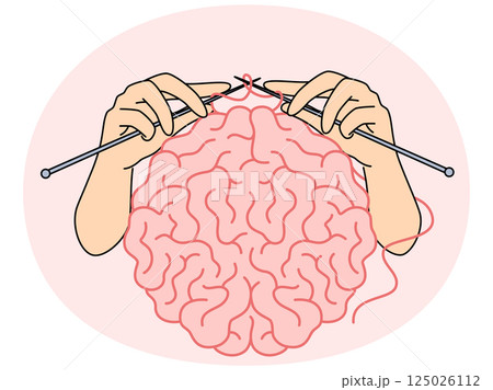 Human brain and hands with knitting needles, as metaphor for intellectual development