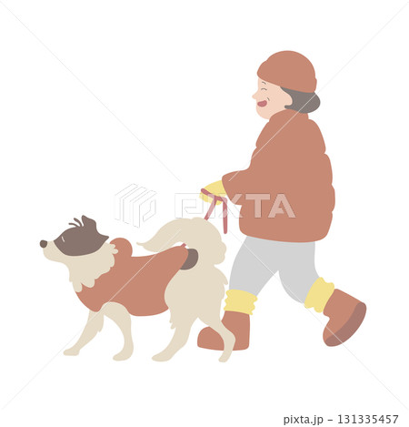 犬の散歩 冬 女性