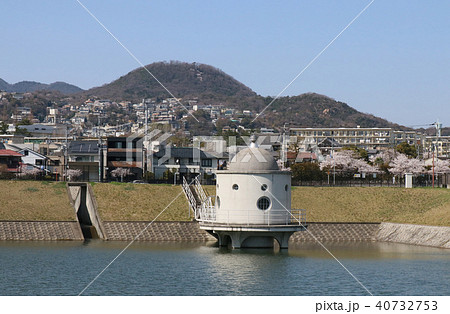 ニテコ池(貯水池)と取水塔 西宮の名勝地 桜の名所(火垂るの墓のモデル) 西宮市満池谷町