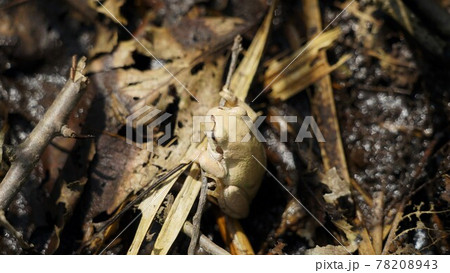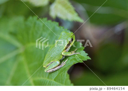 ニホンアマガエル 日本雨蛙 Dryophytes japonicus 蓮の葉 カエル 蛙 季節