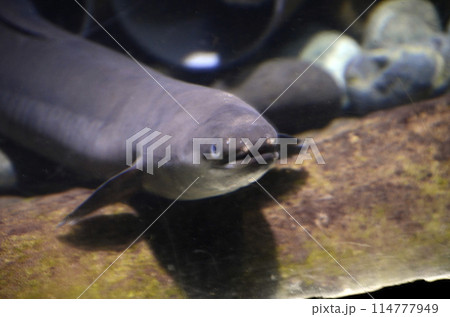海底の砂利から可愛らしい顔を出すニホンウナギ海洋生活期の銀ウナギ国産希少価値土用の丑の日