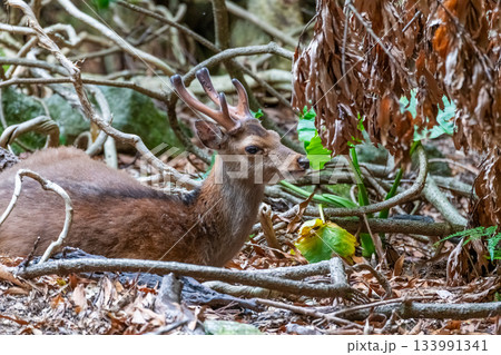 ヤクシカの雄 くつろぐ 世界自然遺産屋久島(夏
