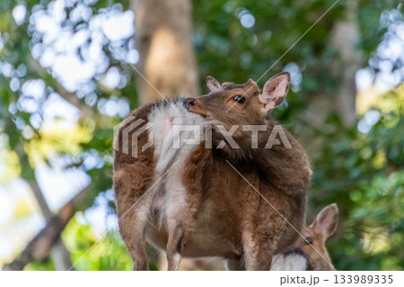 ヤクシカの雌 くつろぐ愛撫 世界自然遺産屋久島(春